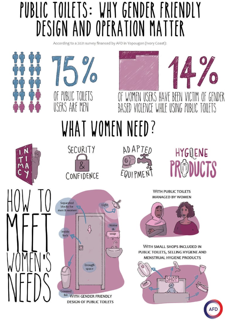 Toilettes publiques Non-adaptées aux femmes (étude AFD 2021)