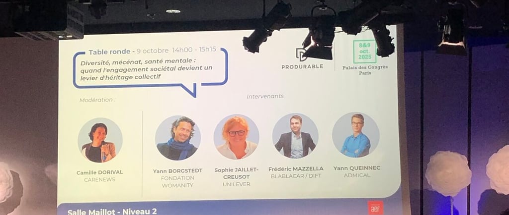 L’un des moments forts du salon fut la conférence dédiée au mécénat d’entreprise et à l’engagement sociétal, en présence du fondateur de Dift (et Blablacar) et du représentant de l’Admical.